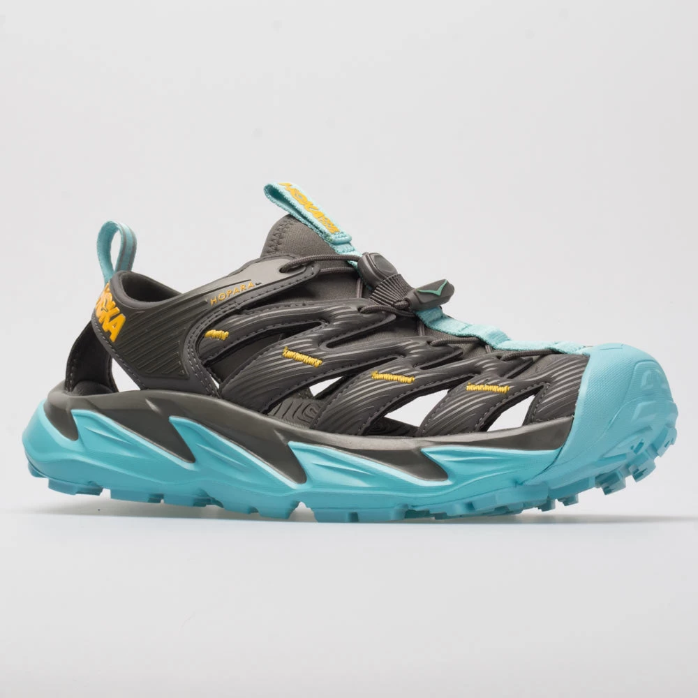 Navigate tricky terrain with ease in the HOKA Hopara. These mountain sandals were made for the outdoor explorer, with a protective upper, responsive midsole, and a sticky outsole for slick surfaces. Enjoy a locked-in fit with strategic cutouts for drainage to keep you dry in wet conditions. Versatile 4mm multidirectional lugs dig deep into the dirt to provide grip on uneven surfaces. The rubberized toe cap offers protection against trail debris, so you can make the most out of your outdoor explorations.